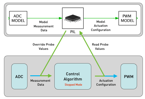 PLECS PILは、実際の組み込みプロセッサ上で制御Cコードを実行し、PLECSモデルと連携して検証するツールです。仮想プラントと実機を接続し、プラットフォーム依存の不具合や動作特性を評価できます。