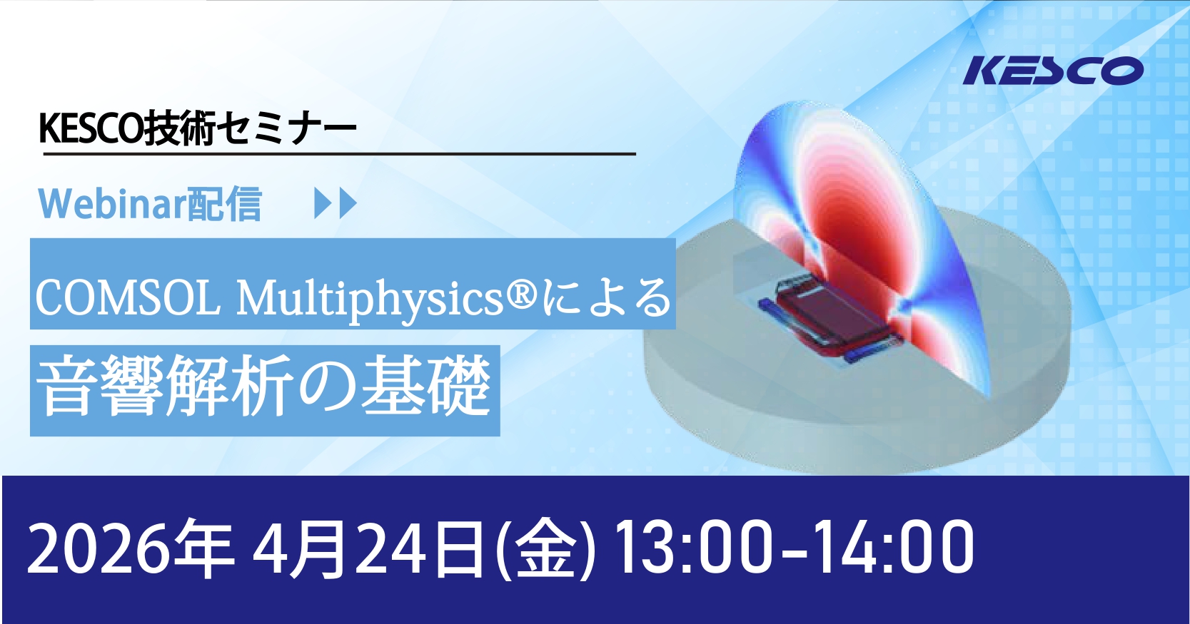 本セミナーでは、COMSOL Multiphysics® の音響モジュールに含まれる各種音響フィジックスインターフェースを用いた音響モデリング手法をご紹介いたします。当セミナーでは、音響解析の基礎に焦点を当て、圧力音響解析、吸音材解析、狭い領域での音の伝搬(マイクロアコースティックス)、流体流れ中での音の伝搬(空力音響解析)、固体中での音の伝搬(弾性波)などについて、詳細に解説いたします。本セミナーにご参加いただくことで、COMSOL Multiphysics® の各種音響解析に関する基礎的な内容の全体像を把握するとともに、解析手法を学習することができます。