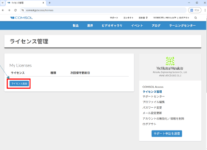 - 画面右側にある「ライセンス管理(Manage Licenses)」をクリックし、「ライセンス管理」ページに移動します。
