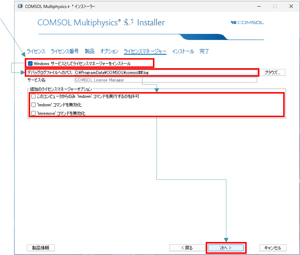 【4.3】 COMSOLライセンスマネージャーをOSのサービスとしてセットアップします。