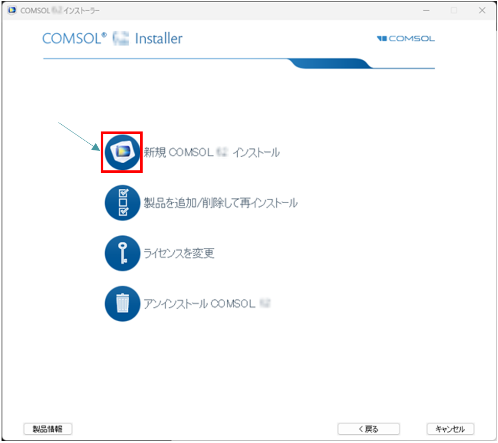 - “新規COMSOLインストール”のアイコン をクリックします。