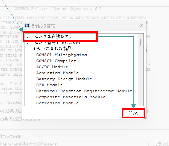 【4.4.2】 指定されたバージョン用トライアルパスコードを適用したCOMSOL Multiphysics®が既にインストールされております。