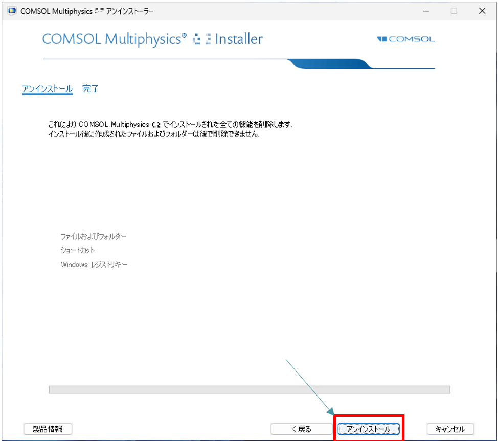 ⇒“COMSOL アンインストーラー” が閉じます。